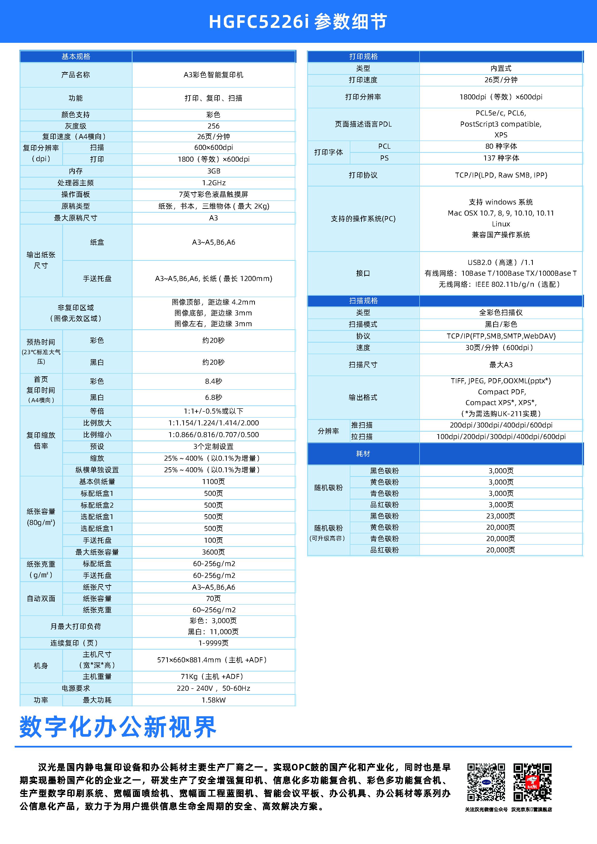 汉光联创系列HGFC5226i彩色A3多功能复合机